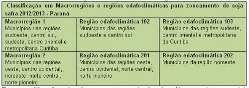 A segunda novidade é a classificação das regiões de plantio de soja no Brasil em macrorregiões e regiões edafoclimáticas.