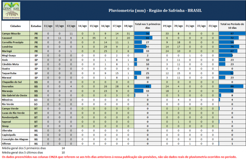 Pluviometria 14/08 – Brasil Safrinha – EUA