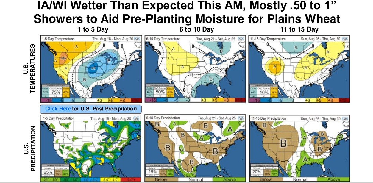 Chuvas nos EUA em agosto ficam 50% abaixo do normal, com temperaturas dentro da normalidade.